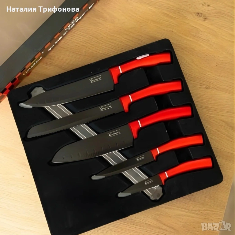 Комплект ножове Goldmann GM 5259, 5бр. с магнитна релса, Незалепващо покритие, Кутия