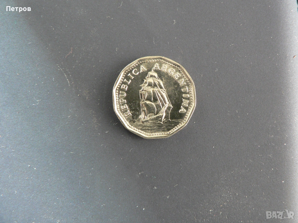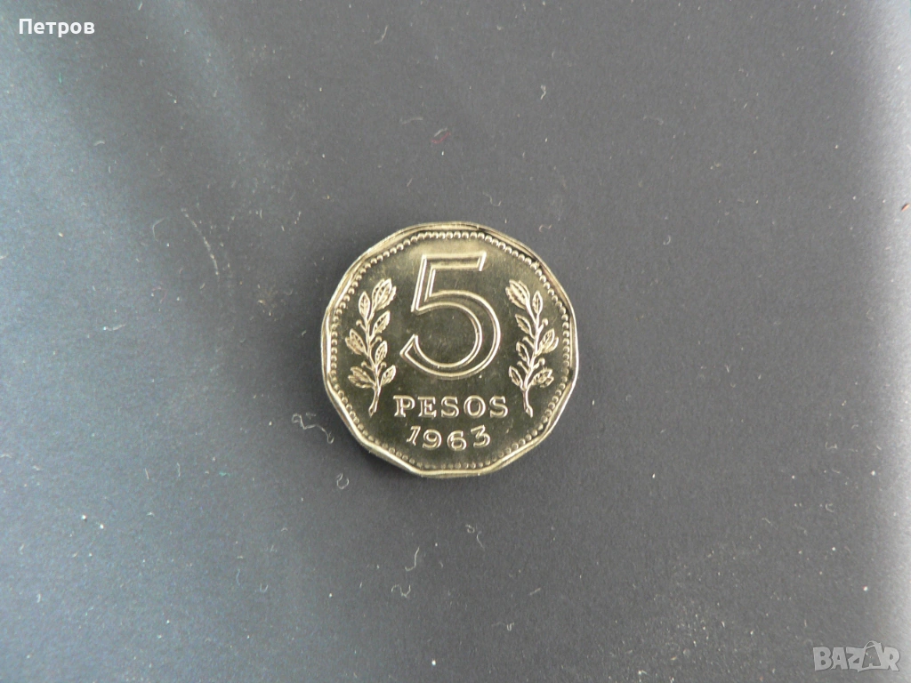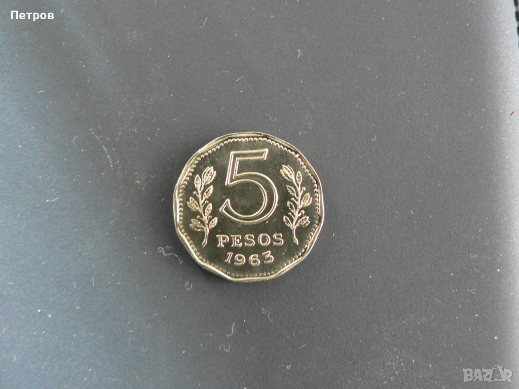 Красива монета с кораб от Аржентина 5 песо 1963г. → Обява 54169544