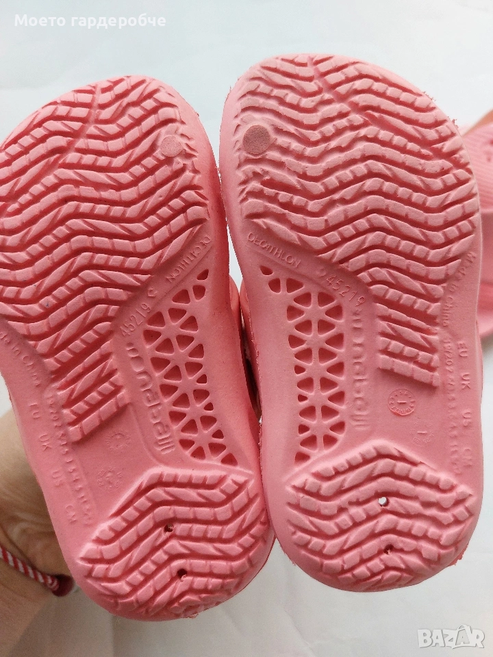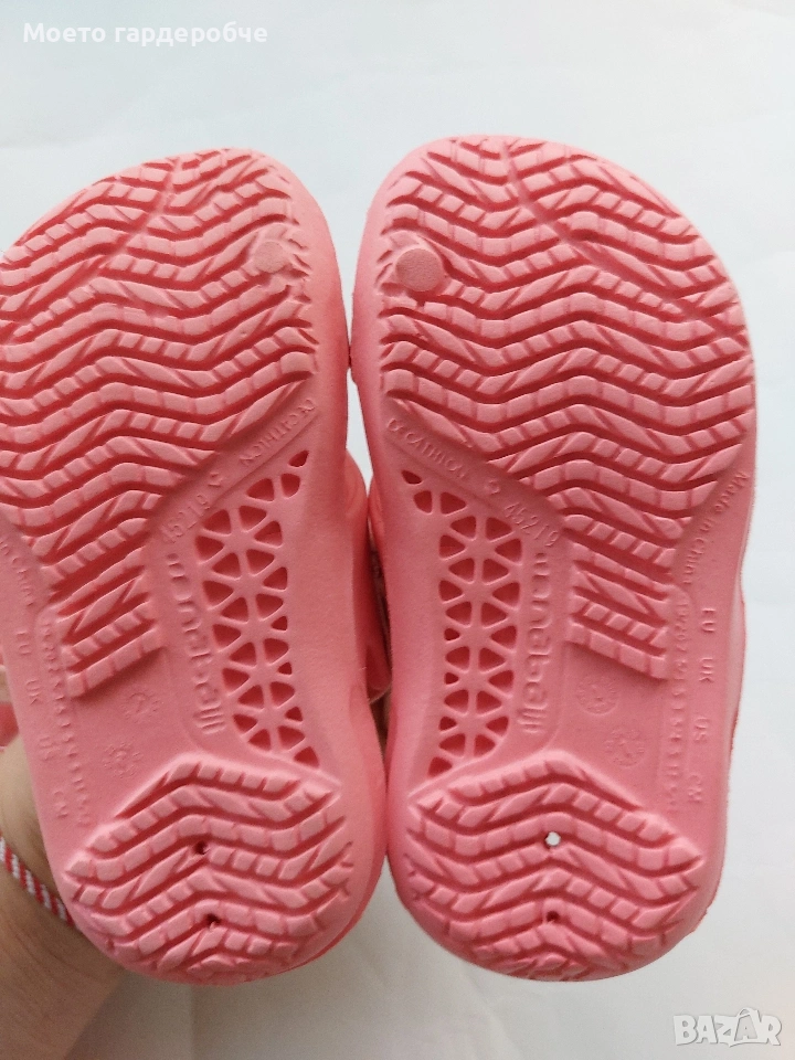 Лот от 2 чифта чехли с ластиче на глезена, номер 19/20. Само единия чифт е използван 2-3 пъти, другият така и не го използвахме. Като нови са, не са слагани на вън, само в къщи. Цена за лота 2,50 евро.