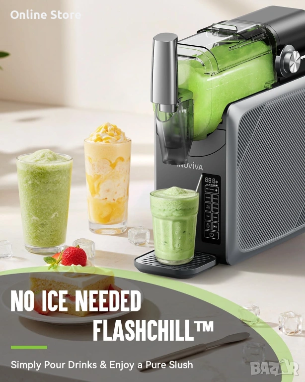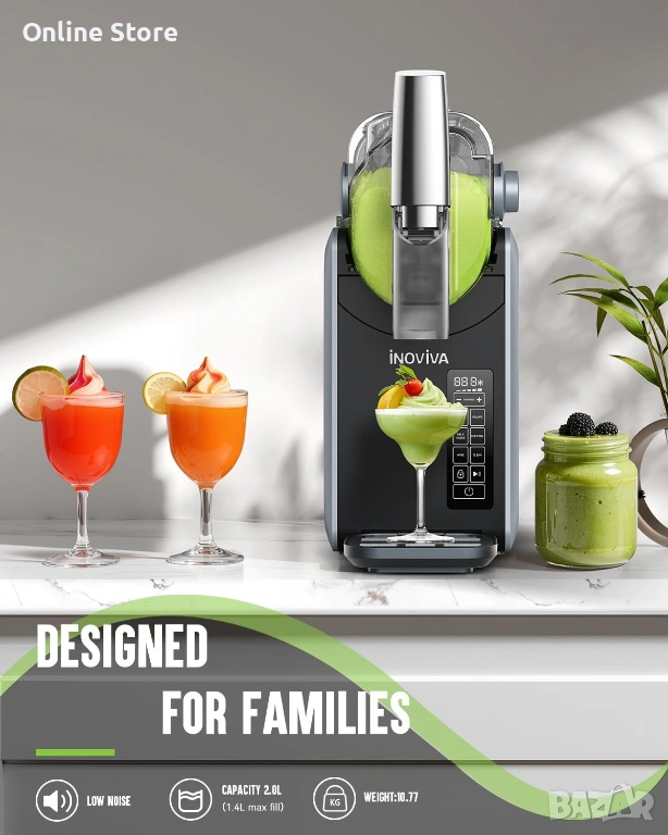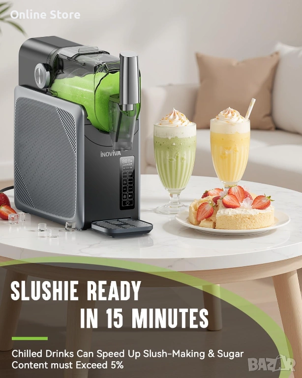 Направете любимите си ледени напитки у дома бързо и без излишно разреждане. Машината охлажда директно, без да е нужен лед, което запазва по-плътния вкус и правилната текстура. Подходяща е за слуши, фрапета, коктейли и други освежаващи напитки, а капацитетът от 2 литра я прави отличен избор за семейство, гости и летни събирания. Моделът е с английски щепсел, като предлагаме европейски преходник на цена 2 евро.