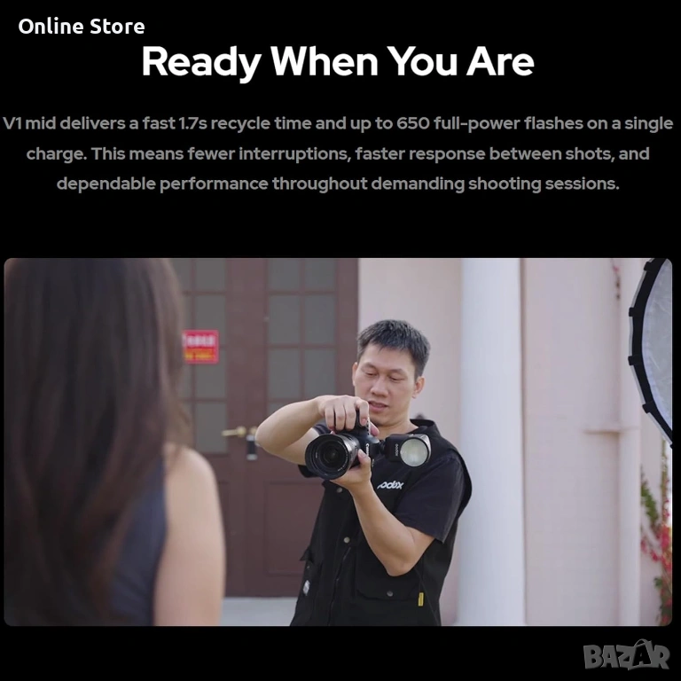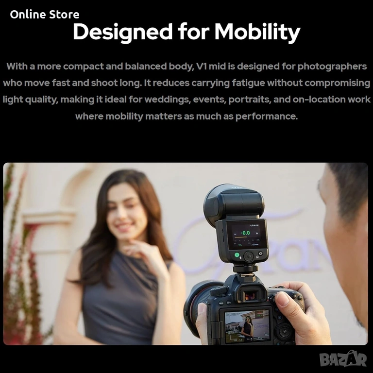 Компактна и мощна TTL светкавица за Canon, създадена за по-красиво, меко и равномерно осветяване при снимки и видео. Кръглата глава дава по-естествена светлина и по-приятни сенки, а бързото презареждане и силната батерия я правят отличен избор както за събития, така и за портретна и студийна работа. Вградената безжична система и LED моделиращата лампа дават повече свобода и контрол при всяка снимка.