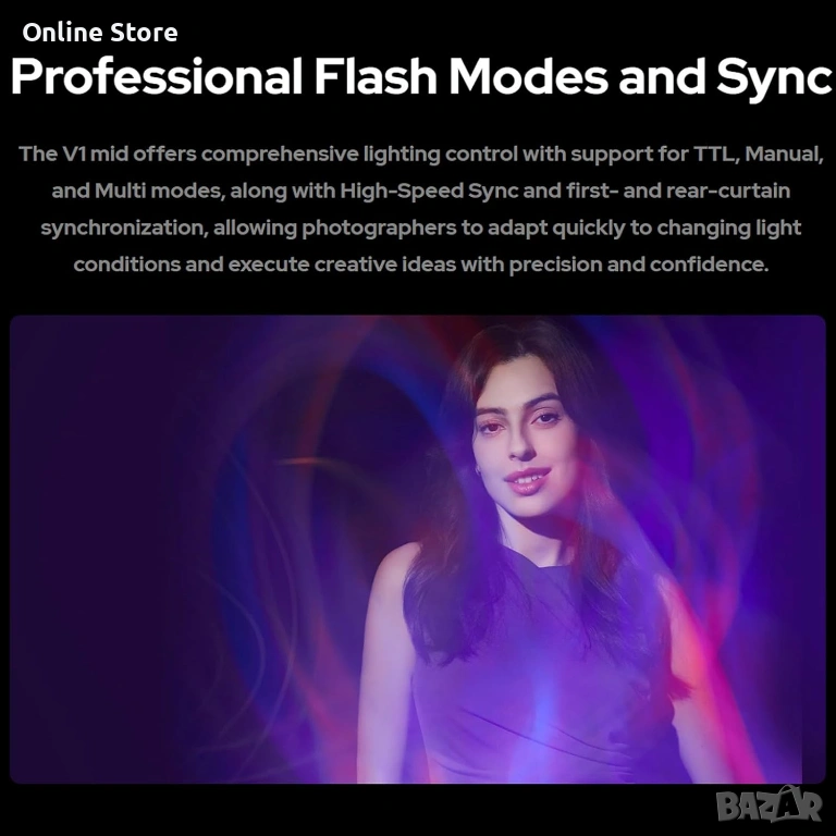 - TTL, ръчен и мулти режим за гъвкав контрол