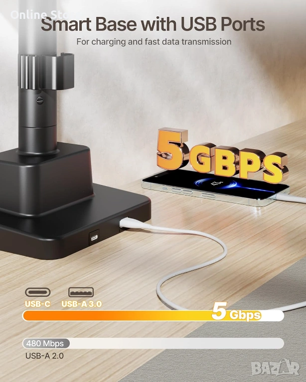 - VESA 75x75 и 100x100, монтаж със скоба или втулка, плюс USB-A и USB-C портове