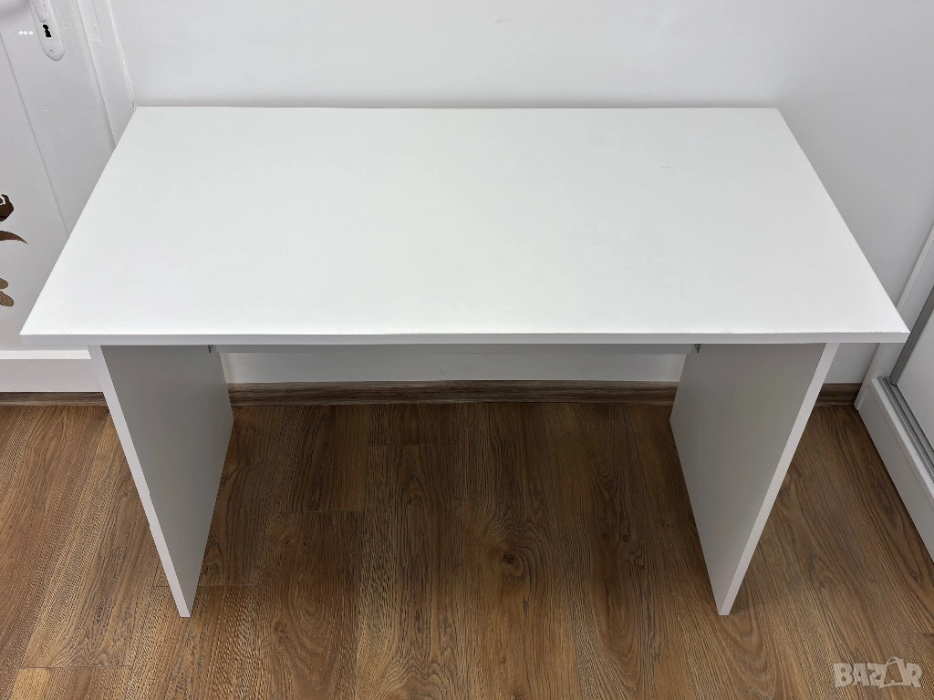 Продавам ново, стабилно бяло бюро с размери 110/57/75h см. Направено по поръчка от ПДЧ 18 мм. Много лесен монтаж / демонтаж. Подходящо за офис или домашно ползване. Намира се в центъра на Пловдив.