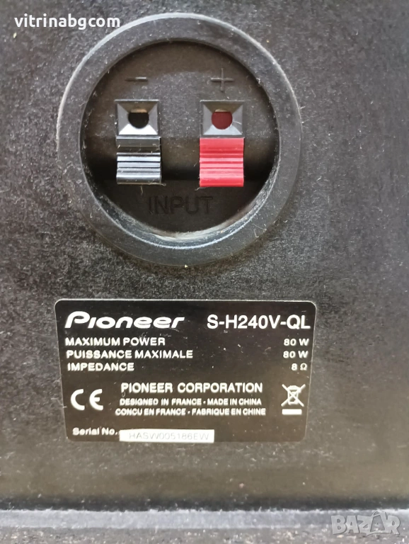 Тонколони: Pioneer S-H240V-QL. Елегантни стоящи колони (80W, 8 ома) в цвят светъл фурнир. Свирили са заедно с Technics-а и си пасват перфектно. Налични са предните решетки.