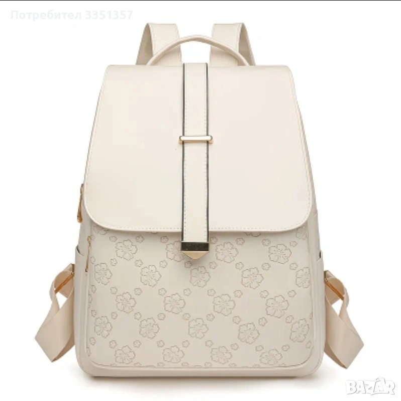 Уникален дизайн: Раницата е в красив, мек кремав цвят, с нежен релефен мотив от цветя в долната част.