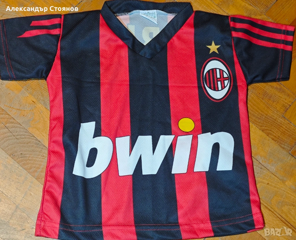 Време е вашето малко съкровище да облече легендарното „червено-черно“! Продавам детска фен тениска на Милан, подходяща за дете на около 2 годинки.