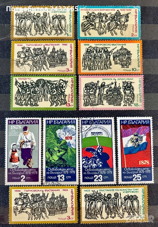 3824. България 1975 /77 - “ История на България “ ( 12 бр. клейм. марки )