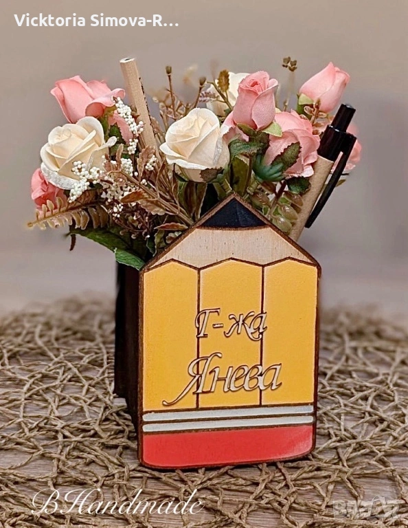 Ръчно рисувани, дървени моливници с букет и персонализирани молив и химикалка, снимка 1 - Изкуствени цветя - 54170602 Ръчно рисувани, дървени моливници с букет и персонализирани молив и химикалка, снимка 2 - Изкуствени цветя - 54170602 Ръчно рисувани, дървени моливници с букет и персонализирани молив и химикалка, снимка 3 - Изкуствени цветя - 54170602 1/3