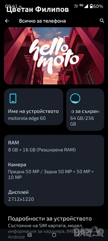 Motorola Edge 60 256gb/ 8+16Ram → Обява 54170635