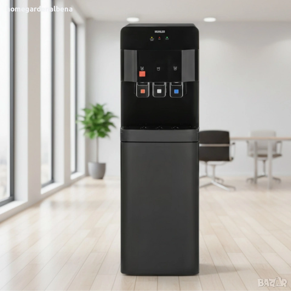 Ключови думи: диспенсер за вода, воден диспенсер, Muhler, компресорен диспенсер, топла и студена вода, офис диспенсер, долно зареждане, Home&Garden by Albena