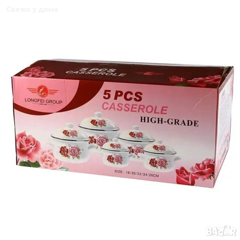 Комплект 5 бр. емайлирани тенджери с незалепващо покритите + капаци ТОП КАЧЕСТВО