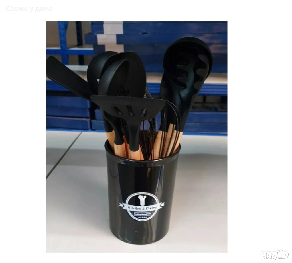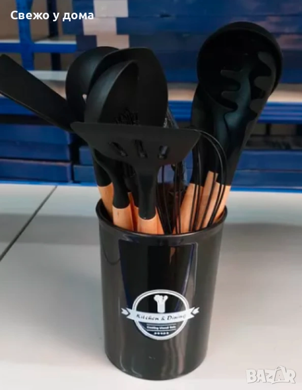 Комплект кухненски прибори 11 бр. в кръгла поставка.