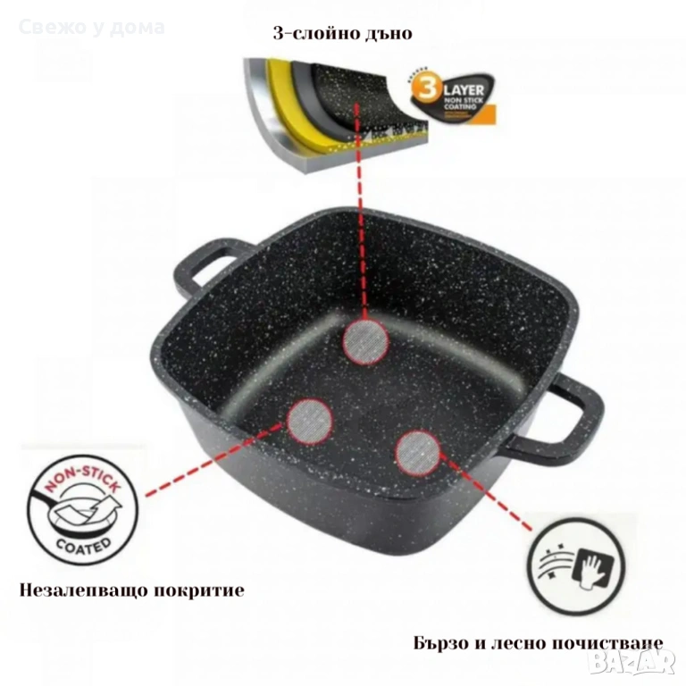 Покритие: 3-слойно мраморно, незалепващо, антибактериално;