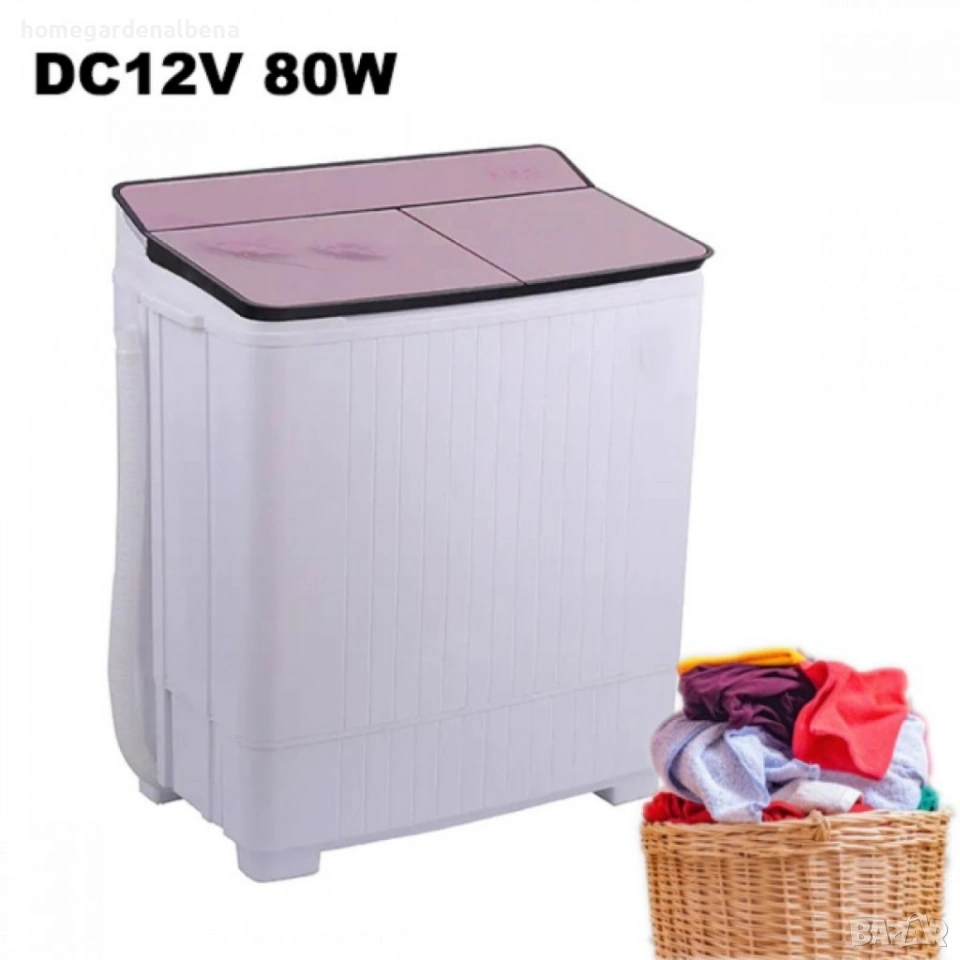 🧺 Практична полуавтоматична пералня с двойна вана – идеална за къмпинг, каравани, вили и места без стандартно захранване.