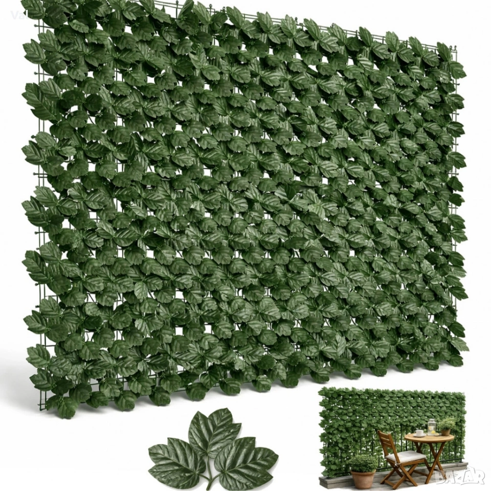Изкуствен жив плет от бръшлян 1.5 x 3 м – UV устойчив, плътна зелена стена за балкон и ограда