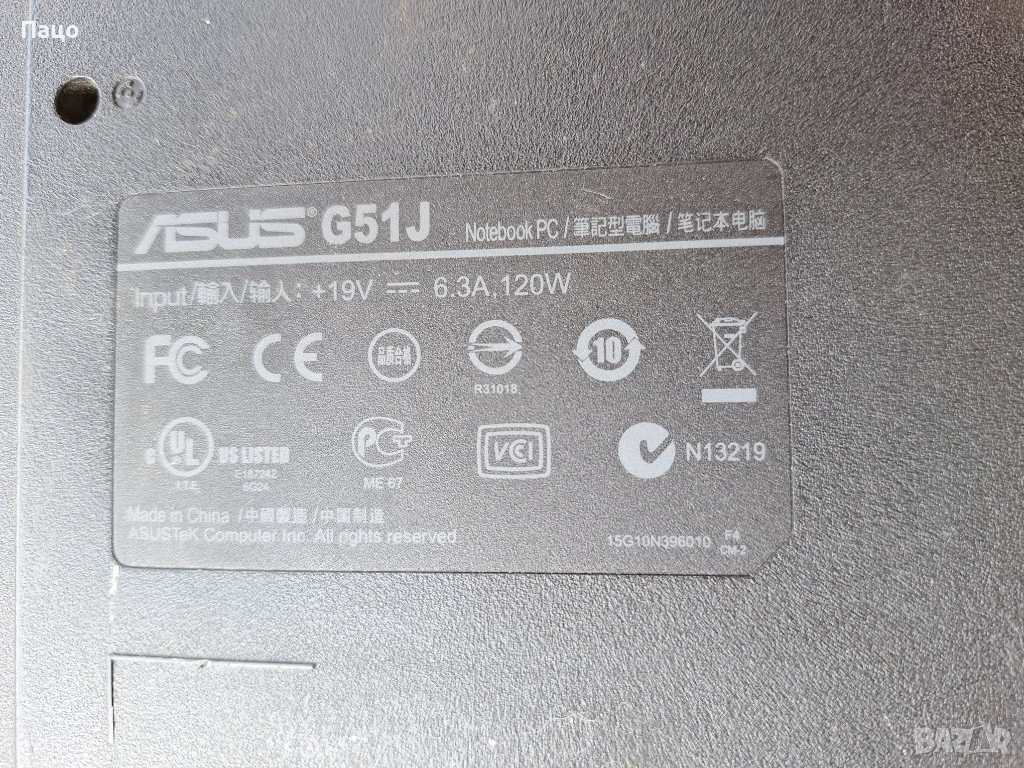 Asus G51J/i7 20QM процесор/РАМ 8ГБ/Подържа до 16ГБ/Батеията е само на 19 процента износване,има снимки/Тестван е с мой готов windows 10 /Еран Няма/ВНОС/ЦЕНАТА Е ЗА СВИЧКО НА СНИМКИТЕ//с опция преглед и тест/