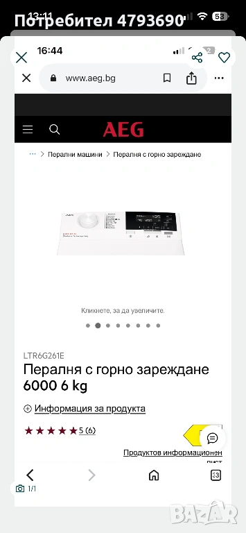 Пералня за части AEG горно зареждане → Обява 54171045