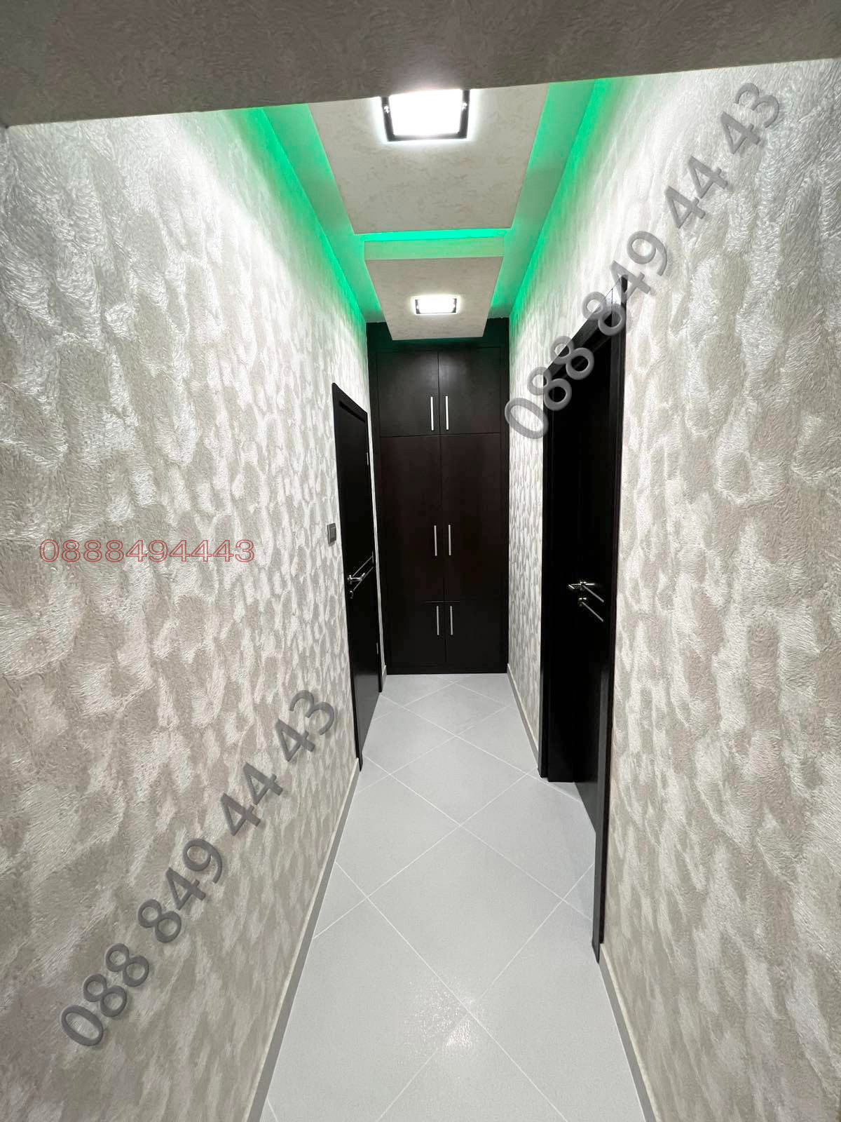Жилището е по-дизайнерски проект, функционалното разпределение е с внимание към всеки детайл и без компромис към влаганите материали. Стените и таваните са висококачествени мазилки и бутикови тапети Roberto Cavalli , висок клас санитарен фаянс ,,Roca .Има джакузи със собствено подгряване на водата, вграден извън банята 150л. бойлер ,,Шишков окачени тавани със скрито многоцветно осветление. Окабеляването е вградено, като всяка стая е оборудвана с кабели за интернет и телевизия. Има външна 10см изолация. Всички мебели и интериорни врати са от МДФ, а меката мебел от естествена кожа.