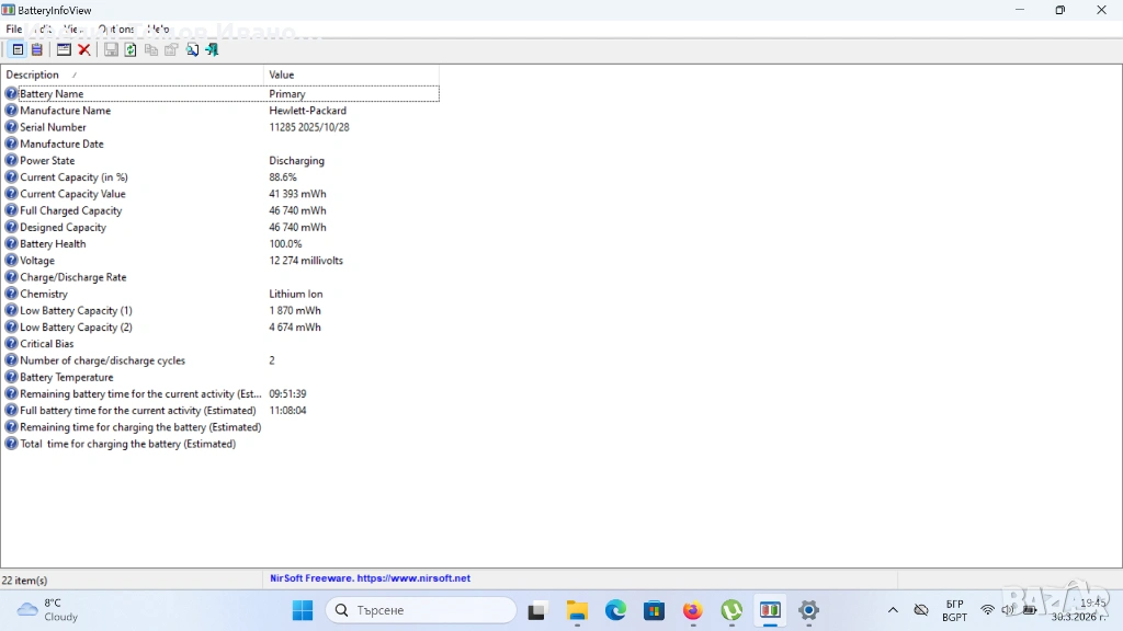 Батерия 3-клетъчна държи 5часа при гледане на видео съдържание (батерията е чисто нова оригинална на 100%