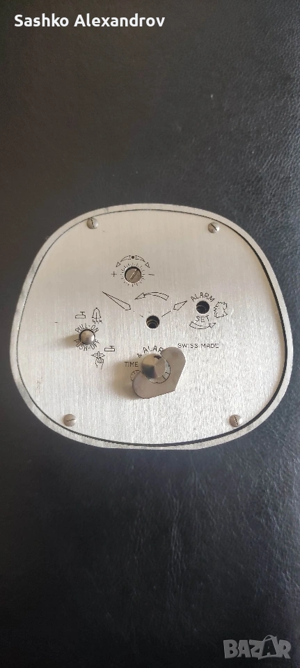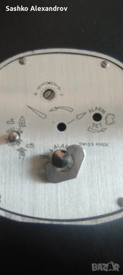 ​Липсват двете малки коронки на гърба за сверяване на точния час и алармата (механизмът под тях е здрав).