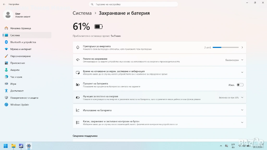 Батерията е на 91.7% живот и държи 4часа гледане на лайф в ютуб.