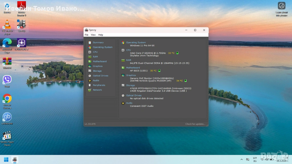 Оборудван с четириядрен процесор Intel Core i7-6820HQ и 64GB DDR4 RAM, лаптоп HP ZBook 15 G3