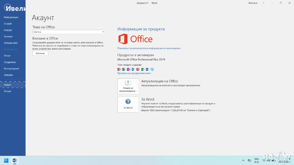 Офис пакет 2019 pro plus активиран с лицензен ключ