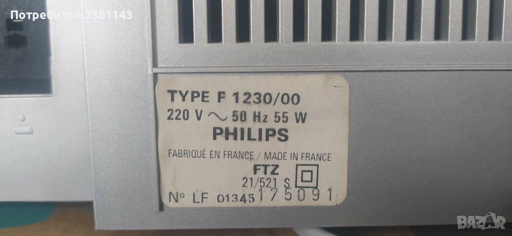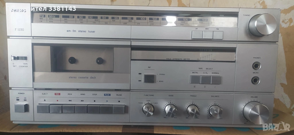 Продавам стерео система PHILIPS F 1230 / 00 , нов внос от Германия . Радиото работи перфектно , грамофона работи но е за смяна на игла , касетофона не работи . Перфектен външен вид , без счупвания и липси . Цена 50 € . Може и лично предаване .