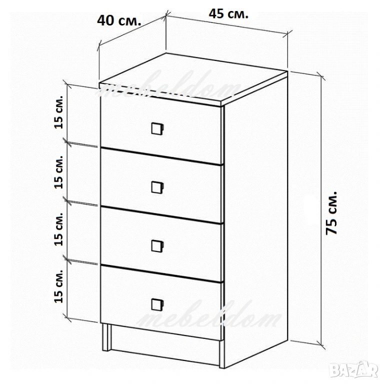 размери: 45 / 40 / височина 75см.