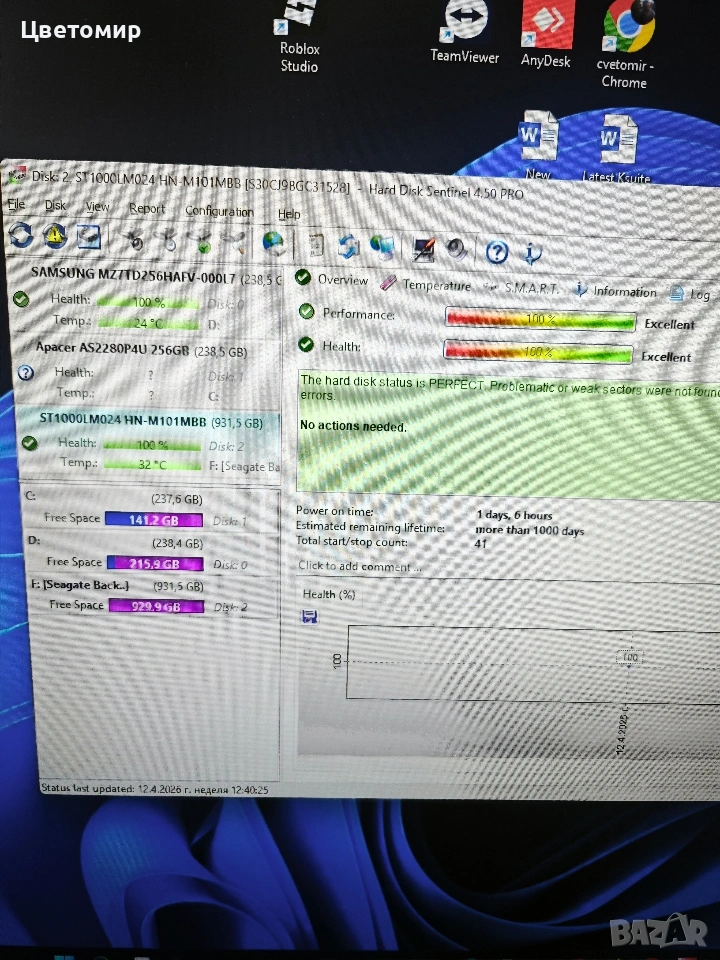1. Seagate 1TB - диска е работил 1 ден
