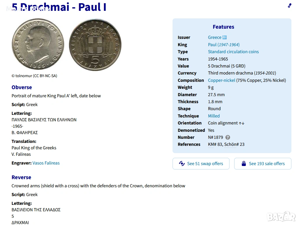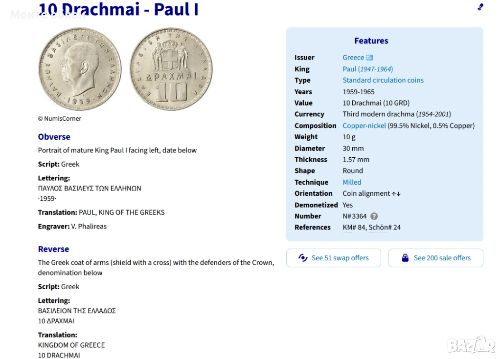 5 Драхми 1954г. и 10 Драхми 1959г. → Обява 54172154