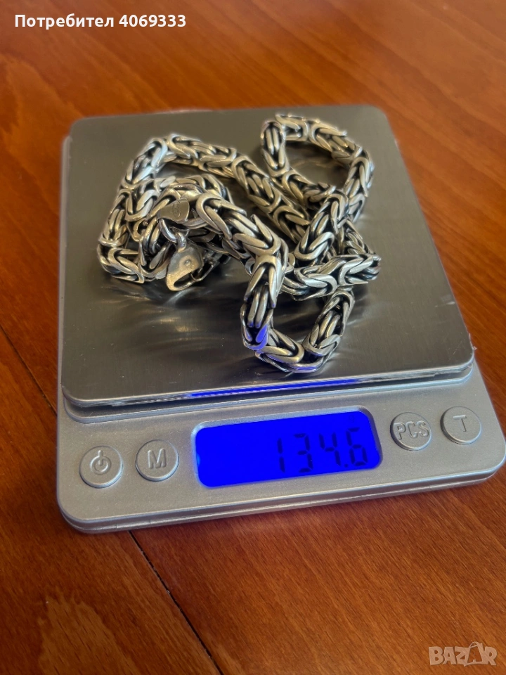 Сребърен ланец Византийска (Кралска плетка ) 134.3гр 925 → Обява 54172274
