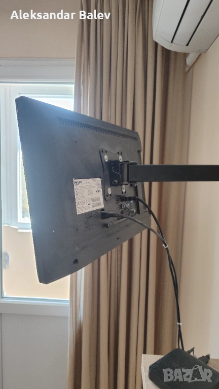 Продава се в комплект с оригиналното дистанционно управление, захранващ кабел и стойката от стената.