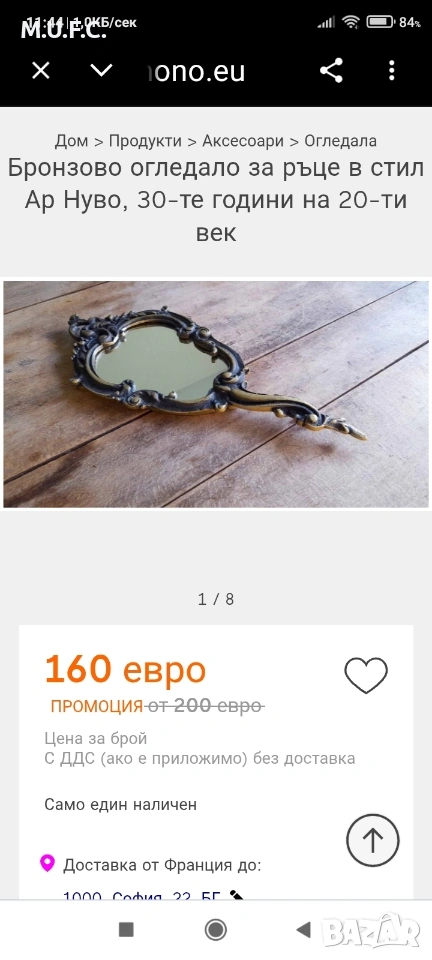 Уникално огледало 1910-1920 Франция 30см 710грама.Масивно прекрасно.Много висока антикварна стойност.Виждате по западните сайтове е по около 180евро.ОРИГИНАЛНО ОЛОВНО СТЪКЛО... РЯДКОСТ И КРАСОТА.ЦЕНАТА Е СМЕШНО НИСКА САМО 45 ЕВРО.Питайте предложете цена.Вижте и другите ми няколко обяви.НЕ съм търговец разпродавам семейни ценности.Комплексна цена от обявите