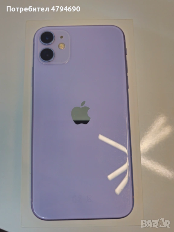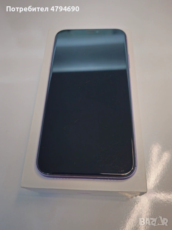 Продавам iPhone 11 с вътрешна памет от 64GB в лилав цвят. Капацитет на батерията 76%.