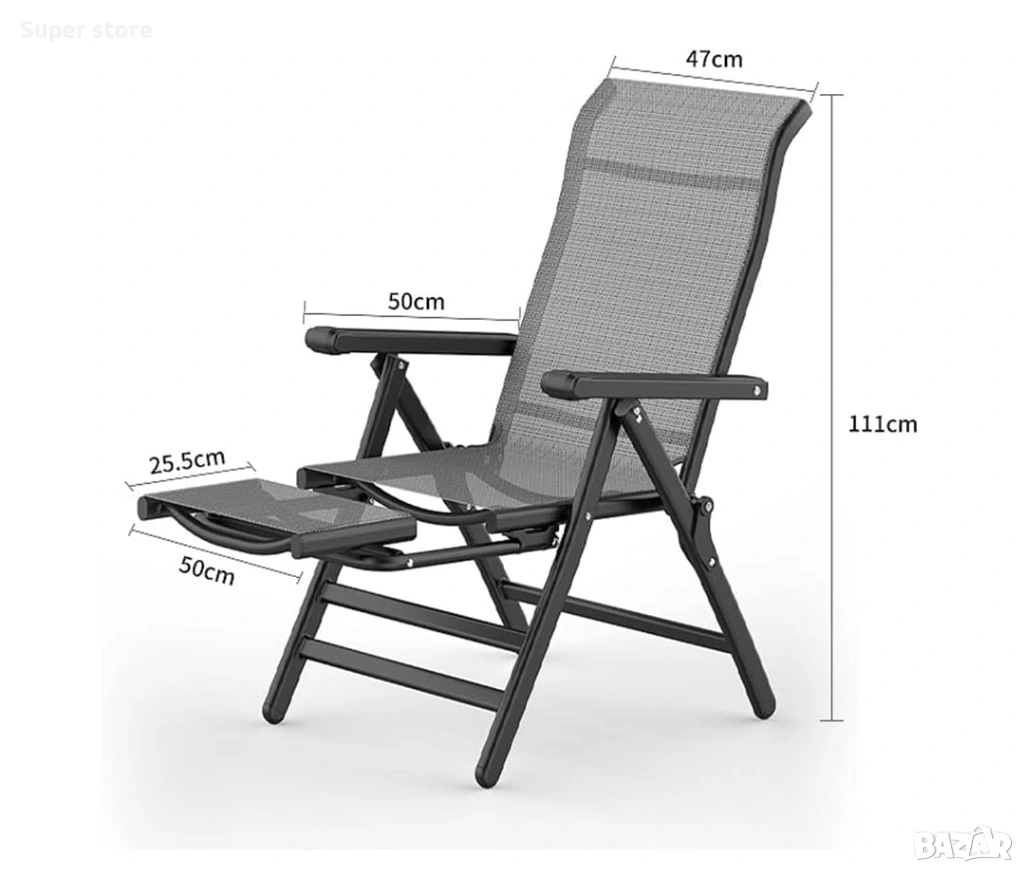 Сгъваем шезлонг с поставка за крака → Обява 54172630