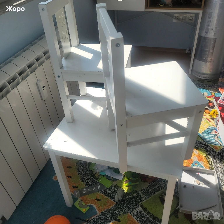 От Икея с плот на масата 60/50см.и два стола бели запазени