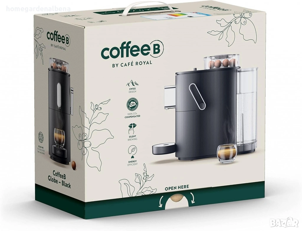 Ключови думи: кафемашина, CoffeeB, Café Royal, Globe, кафе топки, еспресо машина, без капсули, 19 бара, швейцарски дизайн, компостируеми, черна кафемашина, еспресо, енергийно ефективна