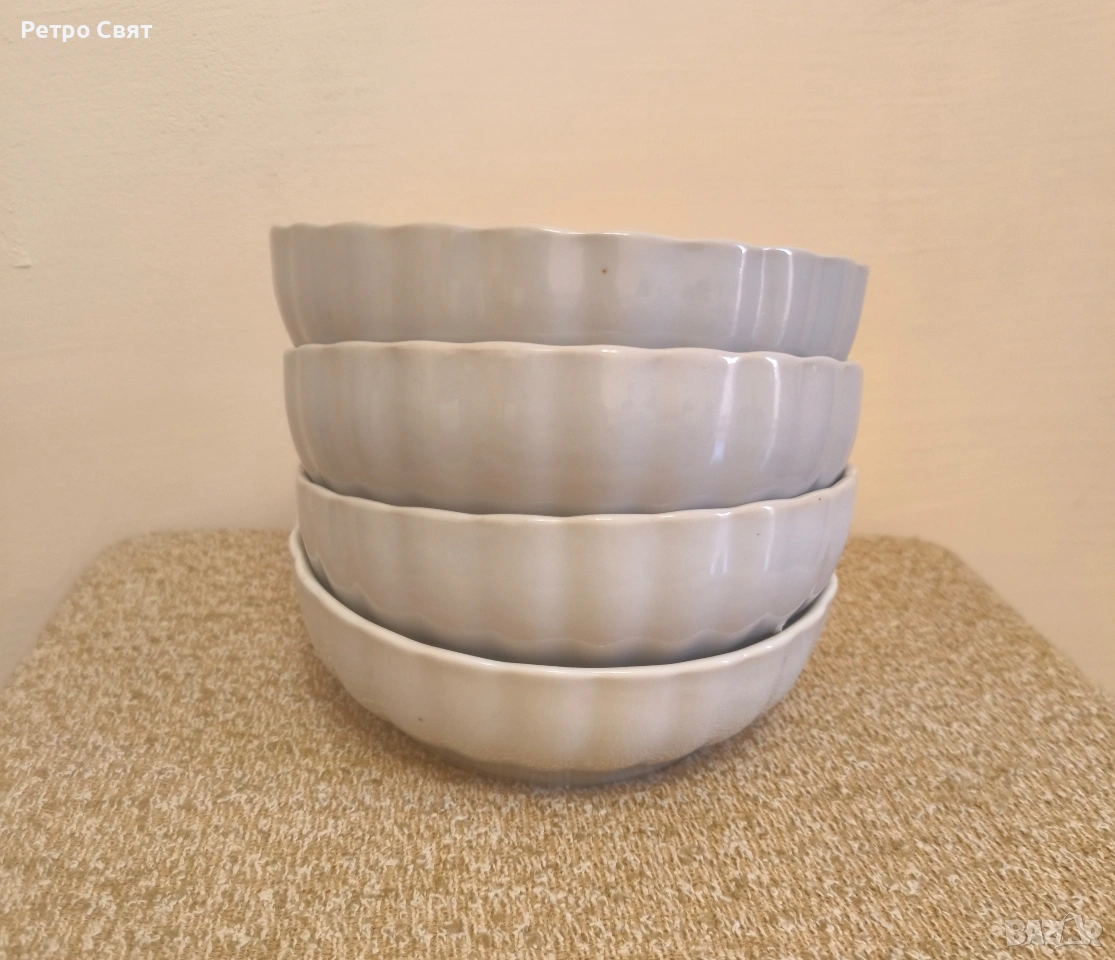 Стари български купи, големи кастрони на фабрика К.Й. Видин. И четирите кастрона са здрави, нямат отчупено. Изпращам с куриер по избор, опаковам за моя сметка.