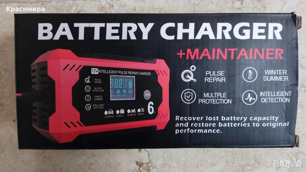 Автоматична работа: Зарядното устройство автоматично ще открие състоянието на батерията и ще започне да зарежда.