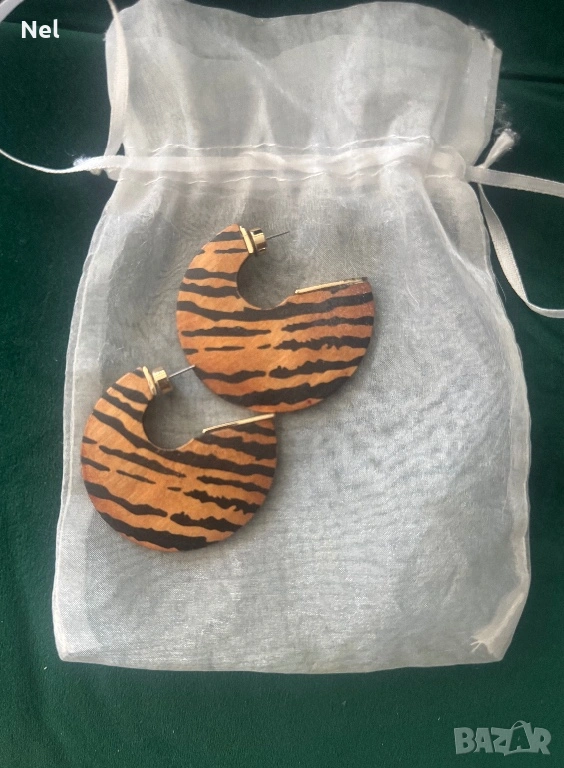* Елегантни дизайнерски обици от дърво с метален кант. Дължина при закачане-5см.