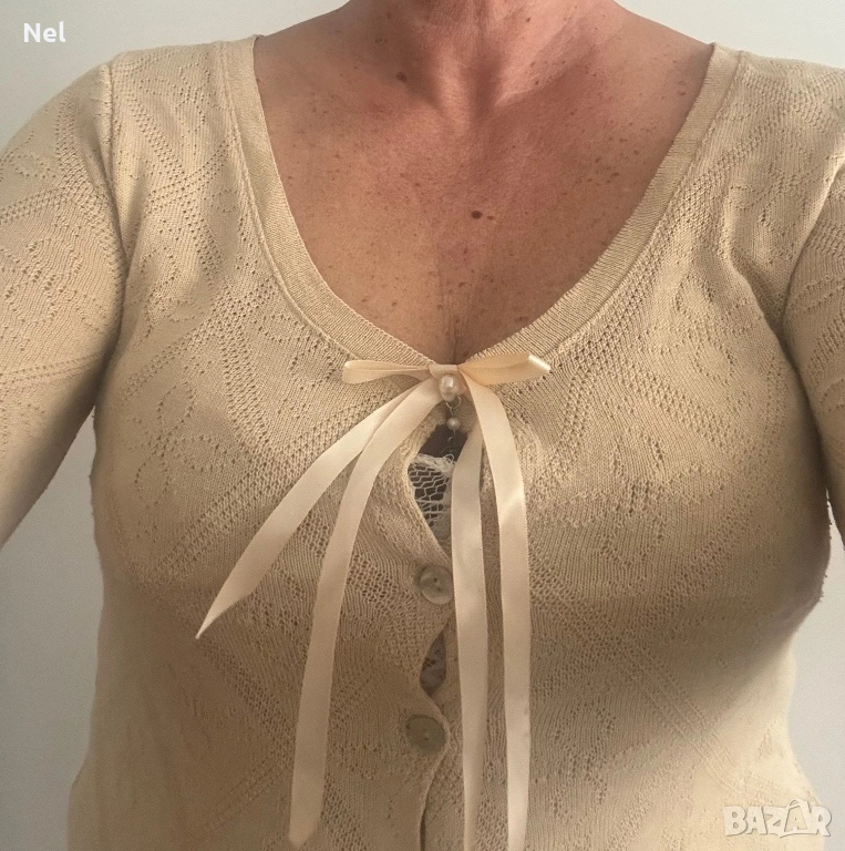 *Оригинална блуза на Steilmann -акрил и вискоза. Размер М , с копчета отпред, но не се разтваря, а отвътре е пришита дантела. Деколтето е отворено, с панделка и метален медальон.