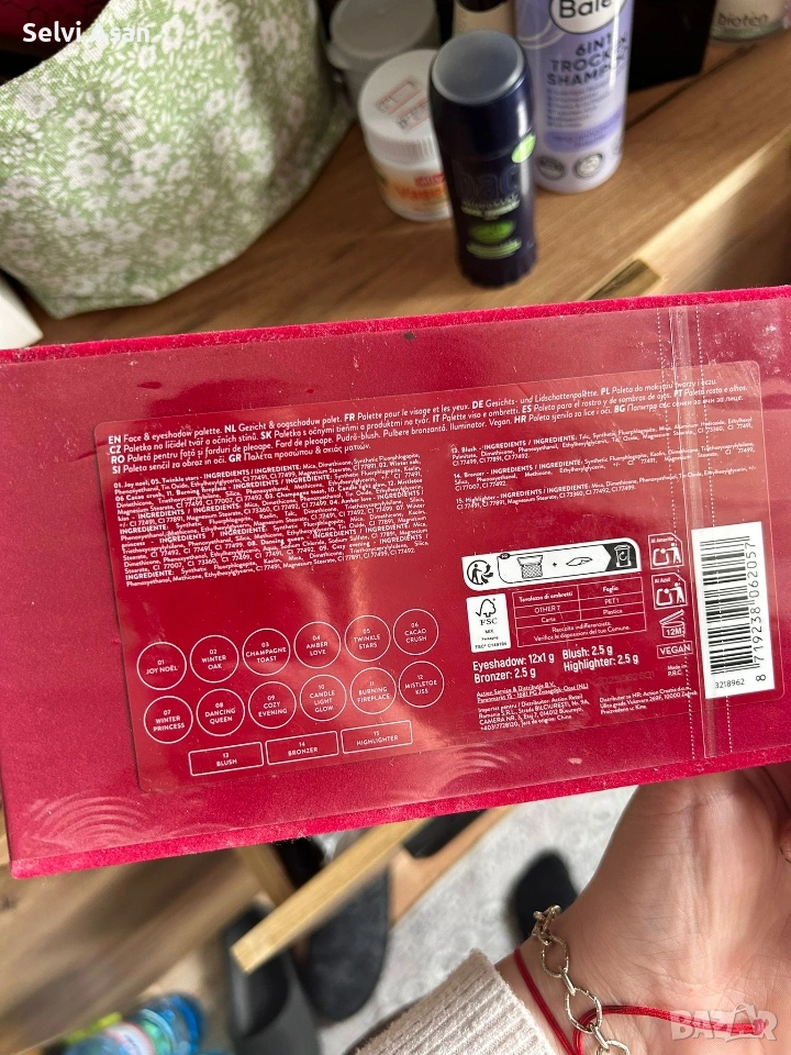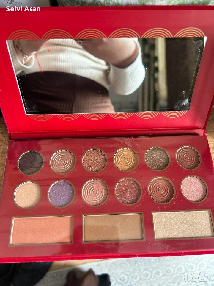 Освен сенките, продуктът съдържа и пудра за лице, руж и хайлайтър, които допълват визията с естествено сияние и контур. Вграденото огледало прави палитрата удобна за използване както у дома, така и в движение.