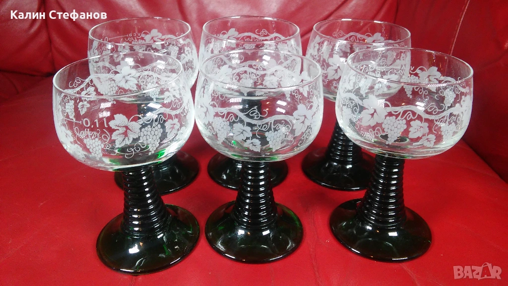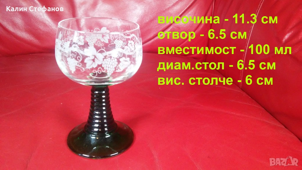 Чаши за концентрат, френски кристал, зелено столче, 100 мл → Обява 54173718