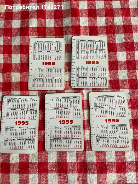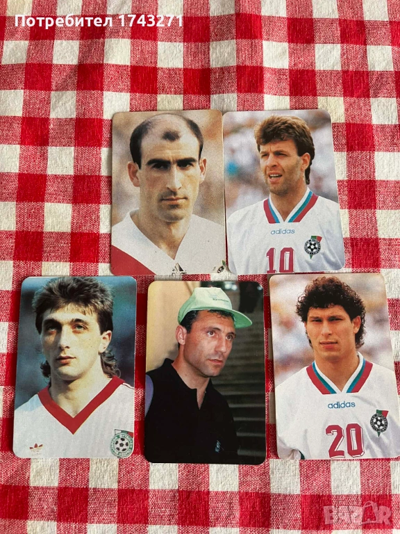 Пет броя календарчета в отлично състояние от 1995 г. с ликовете на Христо Стоичков, Трифон Иванов, Красимир Балъков, Йордан Лечков и Наско Сираков. Обща цена 6 евро.