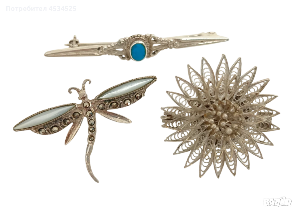 Винтидж сребърни брошки – бар с тюркоаз, водно конче и филигранно цвете, снимка 1 - Антикварни и старинни предмети - 54173768 Винтидж сребърни брошки – бар с тюркоаз, водно конче и филигранно цвете, снимка 2 - Антикварни и старинни предмети - 54173768 Винтидж сребърни брошки – бар с тюркоаз, водно конче и филигранно цвете, снимка 3 - Антикварни и старинни предмети - 54173768 Винтидж сребърни брошки – бар с тюркоаз, водно конче и филигранно цвете, снимка 4 - Антикварни и старинни предмети - 54173768 Винтидж сребърни брошки – бар с тюркоаз, водно конче и филигранно цвете, снимка 5 - Антикварни и старинни предмети - 54173768 Винтидж сребърни брошки – бар с тюркоаз, водно конче и филигранно цвете, снимка 6 - Антикварни и старинни предмети - 54173768 Винтидж сребърни брошки – бар с тюркоаз, водно конче и филигранно цвете, снимка 7 - Антикварни и старинни предмети - 54173768 1/7
