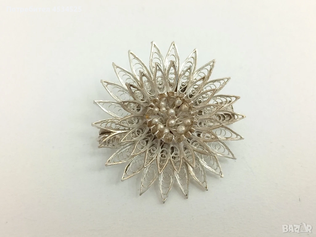 Винтидж сребърни брошки – бар с тюркоаз, водно конче и филигранно цвете → Обява 54173768