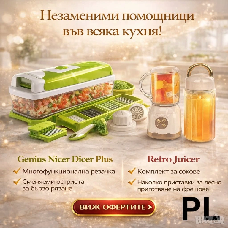Комплект 1+1: Genius Nicer Dicer Plus + Retro Juicer – Рязане и свежи сокове в едно