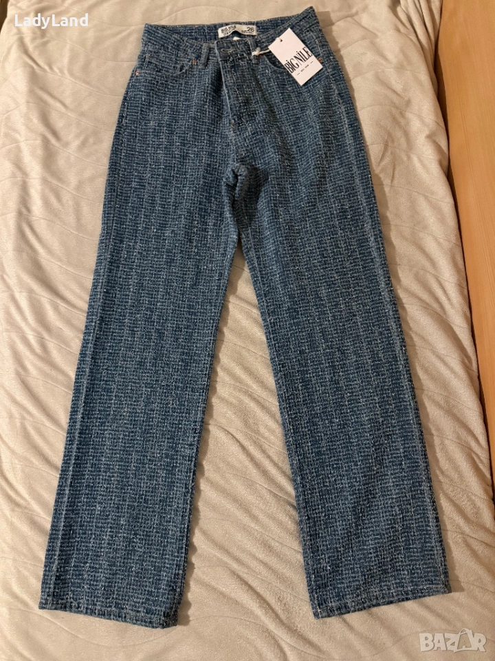 Продавам чисто нов комплект от дънки и потник, нови с етикетите, както се вижда на снимките. Големи са ми, затова ги продавам. Дънките са 26 размер, но са уголемени и според мен стават за М размер. Потникът също е М размер, като се облече става на райета, както е на облечения модел. Продавам ги заедно - общо 19€.